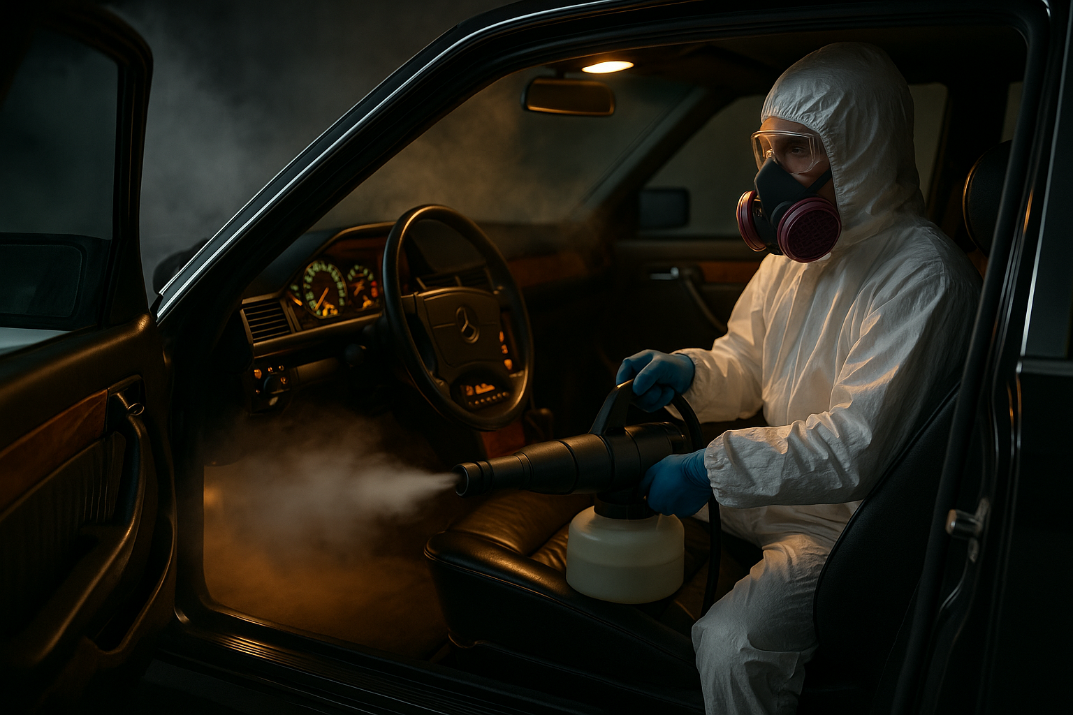 - Дезинфекция салона автомобиля холодным туманом